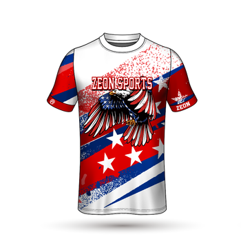 מותאם אישית אמריקאי דגל נשר עיצוב סובלימציה הדפסת ספורט קצר שרוולים עגול O-צוואר t חולצות