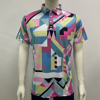 Oem לוגו מותאם אישית מודפס sublimated גיאומטי פרחים גולף חולצת פולו מותאם אישית לגברים